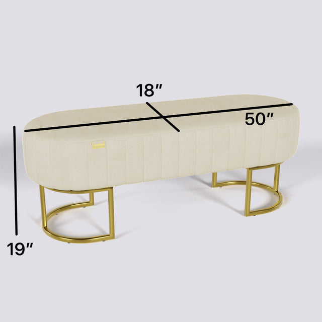 Oval Ottoman In Gold Electroplated Metal Base | 50" x 18"