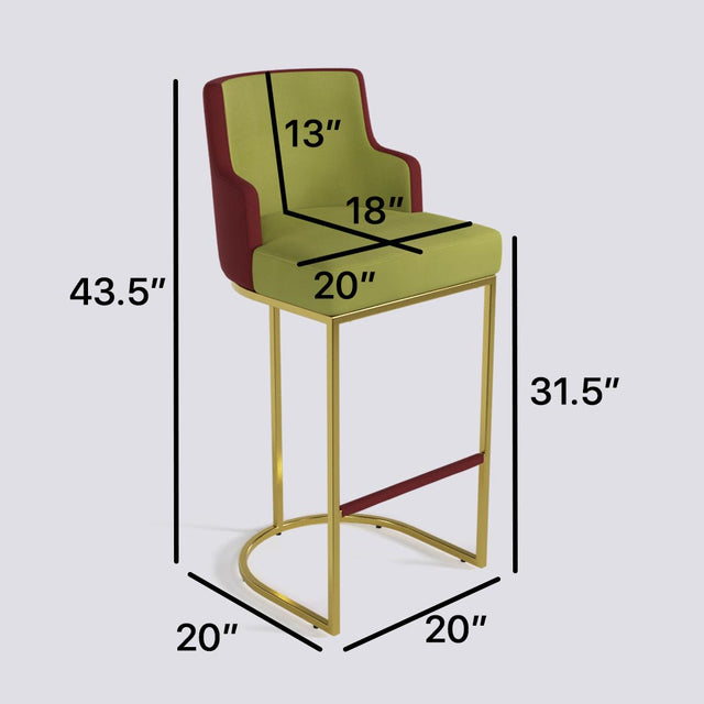 It is a high-rise chair in the style of a bar stool. The frame is made of gold electroplated metal, which gives it an elegant and modern appearance. The frame was designed to fit into any space, and its poppy colors are sure to complement any interior design. The seat is upholstered with a premium leatherette.