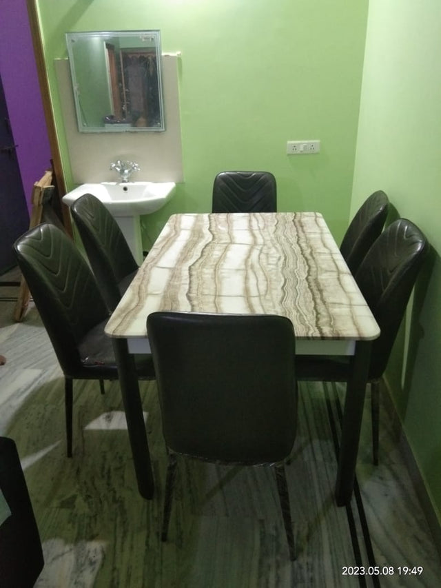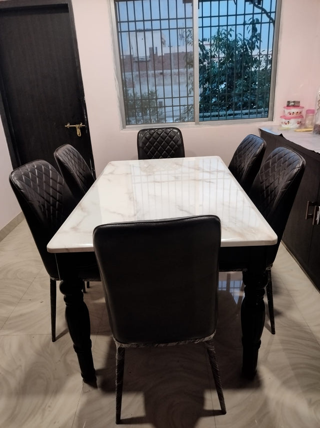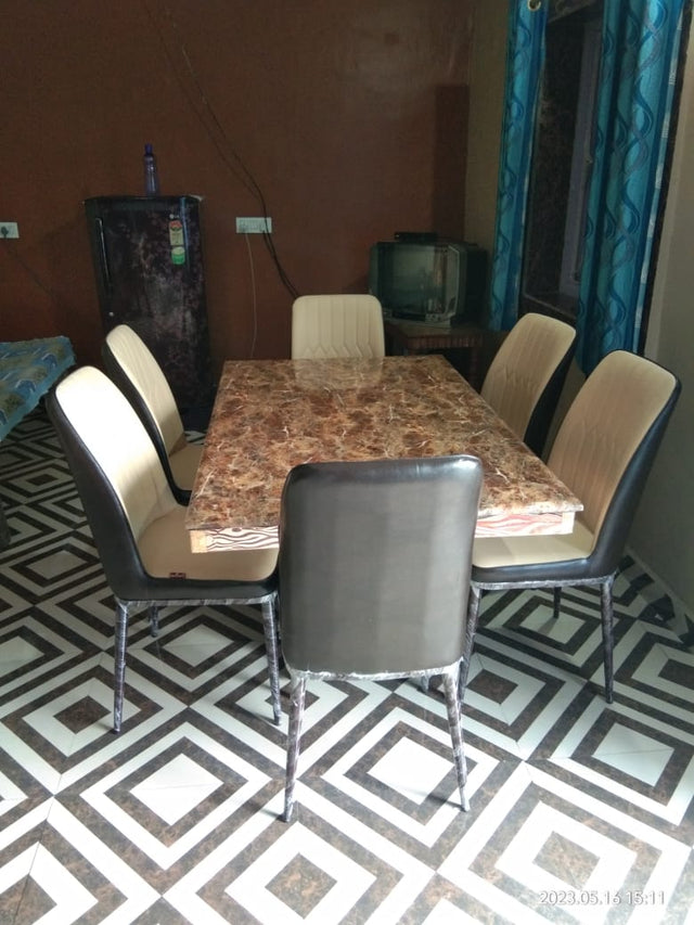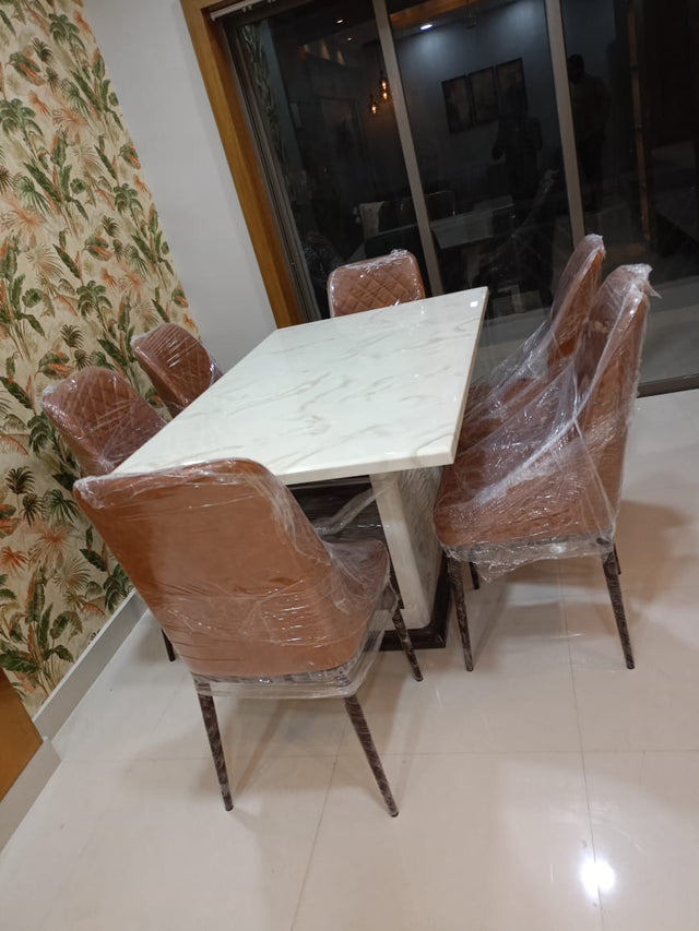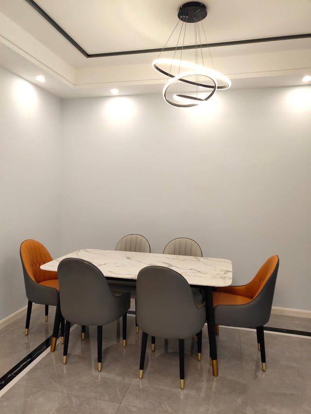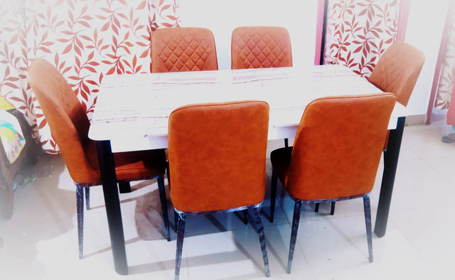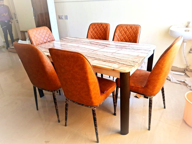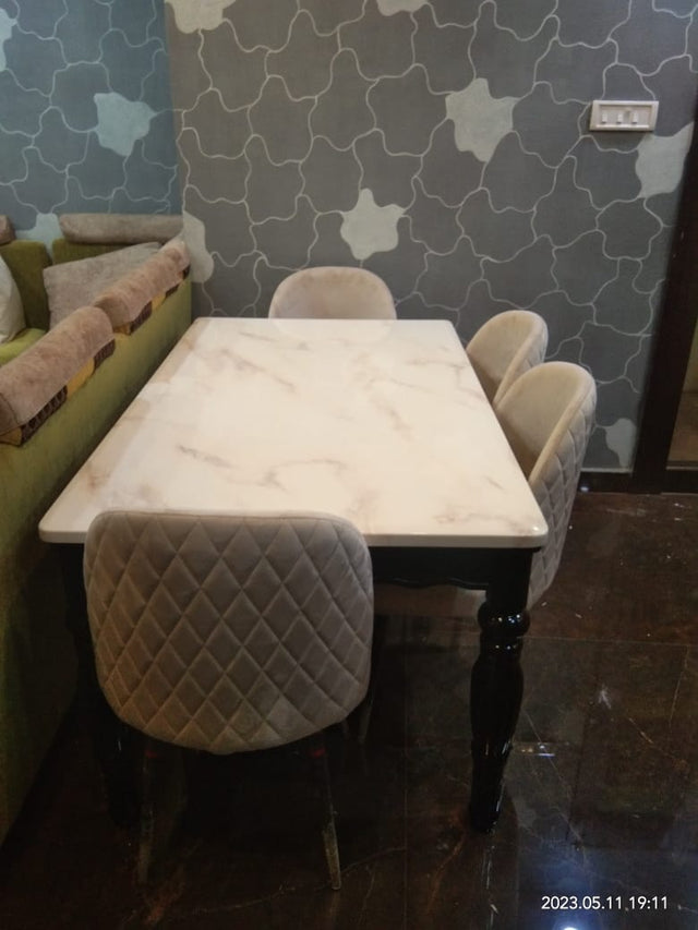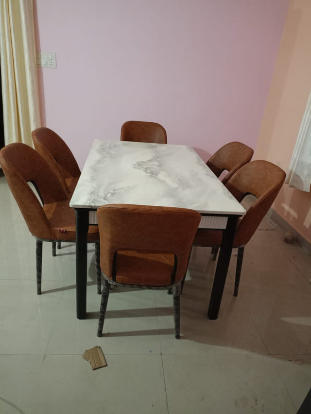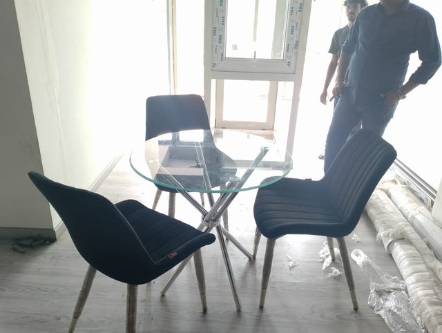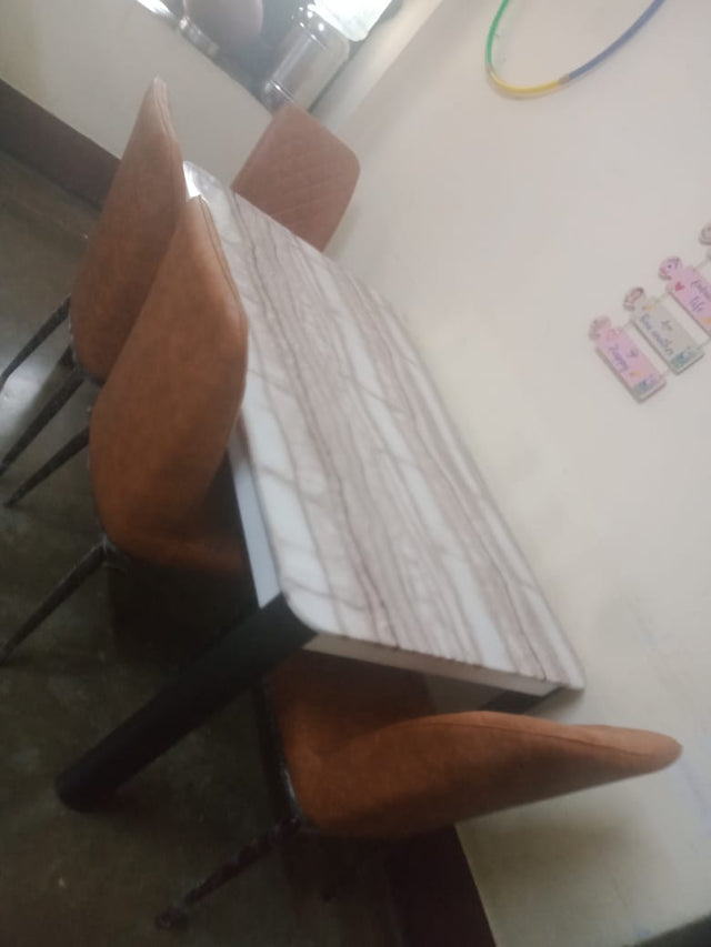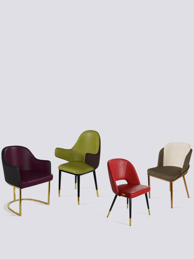 Aesthetic Dining Chair In Powder Coated + Gold Caps Metal Base | 475