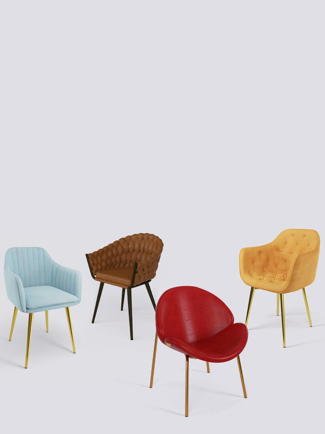 Procket Dining Chair In Powder Coated + Gold Caps Metal Base | 499