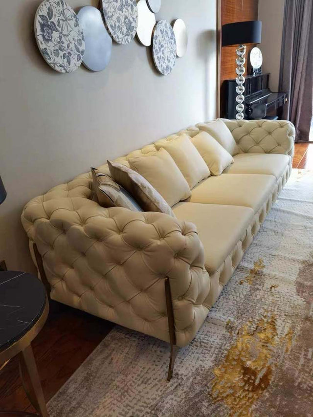 Plushy Lounge Chair In Gold Electroplated Metal Frame | 479